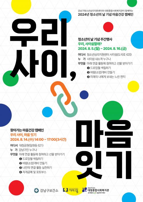 [½Åµ¿¾Æ¹æ¼Û=À̽ŵ¿±âÀÚ] ²ÞÀÌ ¸ðÀÌ´Â µµ½Ã, ¹Ì·¡¸¦ ±×¸®´Â °­³²±¸(±¸Ã»Àå Á¶¼º¸í)°¡ ±¹Á¦ û¼Ò³âÀÇ ³¯À» ¸Â¾Æ ¡®¿ì¸®»çÀÌ, ¸¶À½Àձ⡯ Çà»ç¸¦ 5ÀϺÎÅÍ 16ÀϱîÁö °­³²±¸ û¼Ò³â½É¸®Áö¿ø¼¾ÅÍ »çÀ̽°°ú ´ëû°ø¿ø(14ÀÏ)¿¡¼­ ÁøÇàÇÑ´Ù. Äڷγª19 ÀÌÈÄ ¾Æµ¿¡¤Ã»¼Ò³âµéÀÇ ¡¦