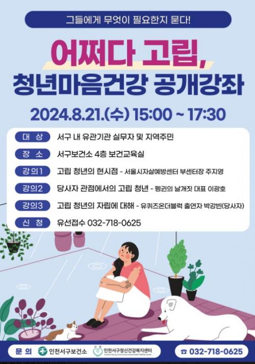 [½Åµ¿¾Æ¹æ¼Û ÀÎõ= À±¹Î½Ä±âÀÚ] ÀÎõ ¼­±¸(±¸Ã»Àå °­¹ü¼®)´Â ¿À´Â 21ÀÏ ¿ÀÈÄ 3½Ã ¼­±¸º¸°Ç¼Ò¿¡¼­ û³â ¸¶À½ °Ç°­ °ø°³°­Á¡¸Ã»³â, ±×µé¿¡°Ô ¹«¾ùÀÌ ÇÊ¿äÇÑÁö ¹¯´Ù-¾î¼´Ù °í¸³¡¹À» °³ÃÖÇÑ´Ù°í ¹àÇû´Ù. Çо÷¡¤Ãë¾÷ °æÀï ¹× ½ÇÆÐ, Àΰ£°ü°èÀÇ ¾î·Á¿ò µîÀ¸·Î ÀÎÇÏ¿© ¡¦