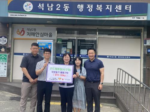 [½Åµ¿¾Æ¹æ¼Û ÀÎõ= À±¹Î½Ä±âÀÚ] ÀÎõ ¼­±¸ ¼®³²2µ¿ ÇàÁ¤º¹Áö¼¾ÅÍ(µ¿Àå ·ùÇöÀÚ)´Â Áö³­ 2ÀÏ ¼­±¸ ½É°îµ¿ ¼ÒÀçÀÇ °ïµå·¹¹äÁý ¼­±¸Á¡(´ëÇ¥ ±è¿µÁÖ), Àλý°Ç¾î¹°(´ëÇ¥ °íÇü±â)·ÎºÎÅÍ °ü³» ¾î·Á¿î ÀÌ¿ôÀ» À§ÇÑ ³ª´®ÀÇ ½Ò 100kgÀ» Àü´Þ¹Þ¾Ò´Ù. °ïµå·¹¹äÁý ¼­±¸Á¡Àº ÃÖ±Ù¡¦