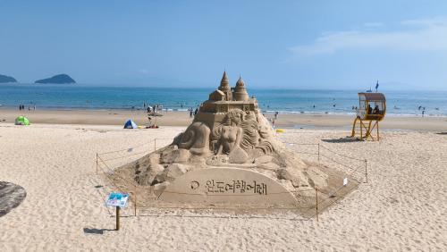 [½Åµ¿¾Æ¹æ¼Û=¿Ïµµ À̼±Á¾ ±âÀÚ] °í¿î ¸ð·¡, ±ú²ýÇÑ ¹Ù´Ù·Î ³²ÇØ¾È ÃÖ°íÀÇ ¿©¸§ ÇǼ­Áö·Î ²ÅÈ÷´Â ¿Ïµµ ½ÅÁö ¸í»ç½Ê¸® ÇØ¼ö¿åÀå¿¡ ¸ð·¡Á¶°¢ ÀÛǰÀÌ ¿Ï¼ºµÅ ´«±æÀ» ²ø°í ÀÖ´Ù. ¸ð·¡Á¶°¢ ÀÛǰÀº ¹é»çÀå Áß¾Ó°ú ¿ÏµµÇؾçÄ¡À¯¼¾ÅÍ ÀÔ±¸¿¡ ¡®ÀÎ¾î°øÁÖÀÇ ¼º¡¯, ¿ÏµµÇؾ硦