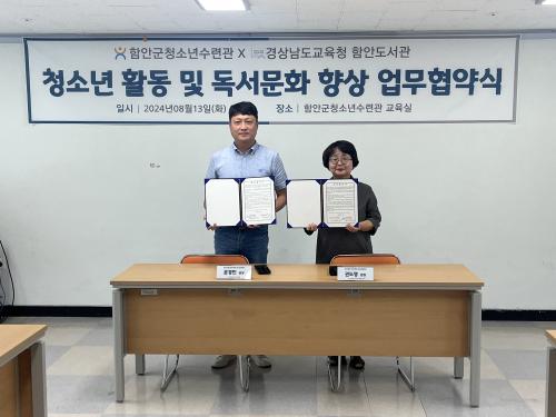 [½Åµ¿¾Æ¹æ¼Û=À̽ŵ¿±âÀÚ]ÇԾȱºÃ»¼Ò³â¼ö·Ã°ü(°üÀå ¹®°æ¹Î)Àº °æ»ó³²µµ±³À°Ã» ÇԾȵµ¼­°ü(º»ºÎÀå Á¶À¯¼·)°ú û¼Ò³â µ¶¼­¹®È­ ÁøÈïÀ» À§ÇÑ ¾÷¹«Çù¾àÀ» ü°áÇß´Ù°í 19ÀÏ ¹àÇû´Ù. ÇԾȱºÃ»¼Ò³â¼ö·Ã°ü¿¡¼­ ÁøÇàµÈ ¾÷¹«Çù¾à½Ä¿¡´Â ÇԾȱºÃ»¼Ò³â¼ö·Ã°ü ¹®°æ¹Î °üÀå, ÇԾȵµ¡¦