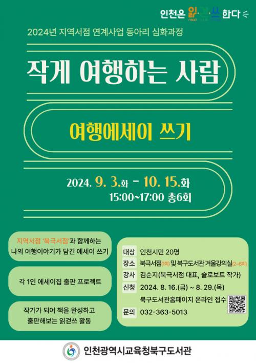 ÀÎõ±¤¿ª½Ã±³À°Ã»ºÏ±¸µµ¼­°ü, Áö¿ª¼­Á¡ ¿¬°è ±Û¾²±â µ¿¾Æ¸® 'ÀÛ°Ô ¿©ÇàÇÏ´Â »ç¶÷' ¿î¿µ