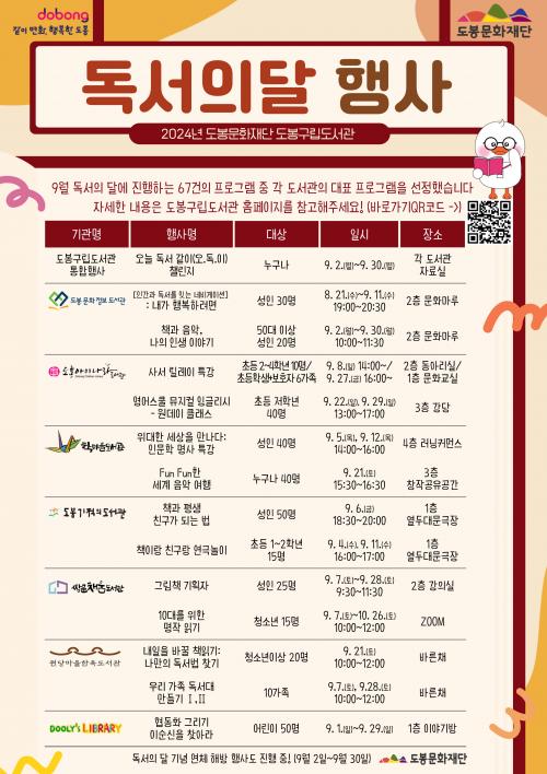µµºÀ±¸¸³µµ¼­°ü, 9¿ù ÇÑ ´Þ°£ 70¿© °³ µ¶¼­¹®È­ Çà»ç ¿î¿µ