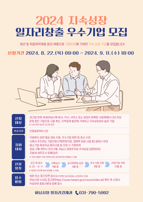 [½Åµ¿¾Æ¹æ»ó=À̽ŵ¿±âÀÚ]Çϳ²½Ã(½ÃÀå ÀÌÇöÀç)´Â Áö¿ª°æÁ¦ ¹ßÀü°ú °í¿ë ÃËÁø¿¡ ³ë·ÂÇÏ´Â Áö¼Ó¼ºÀå ÀÏÀÚ¸®Ã¢Ãâ ¿ì¼ö±â¾÷¿¡ Á÷¿øº¹Áö¿Í °ü·ÃµÈ ÇÊ¿ä°æºñ µî ´Ù¾çÇÑ ÇýÅÃÀ» ºÎ¿©Çϱâ À§ÇØ ¿À´Â 9¿ù 11ÀϱîÁö ¡®2024³â Áö¼Ó¼ºÀå ÀÏÀÚ¸®Ã¢Ãâ ¿ì¼ö±â¾÷¡¯À» ¸ðÁýÇÑ´Ù°í ¹àÇû´Ù. ¡¦