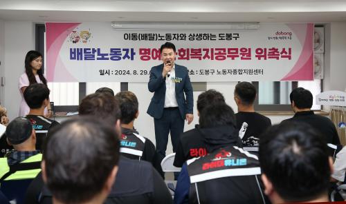 [½Åµ¿¾Æ¹æ¼Û=À̽ŵ¿±âÀÚ]µµºÀ±¸(±¸Ã»Àå ¿À¾ð¼®)°¡ Áö¿ª ¹è´Þ³ëµ¿ÀÚ 20¸íÀ» ¸í¿¹»çȸº¹Áö°ø¹«¿øÀ¸·Î À§ÃËÇß´Ù. ¸í¿¹»çȸº¹Áö°ø¹«¿øÀº Áö¿ª ³» À§±â°¡±¸¸¦ ã¾Æ µ¿Áֹμ¾ÅÍ¿¡ ¿¬°èÇØÁÖ´Â ÀÚ¹ßÀû ¹«º¸¼ö, ¸í¿¹Á÷ ºÀ»çȰµ¿À» ÇÏ´Â À̵éÀ» ¸»ÇÑ´Ù. À̹ø À§ÃËÀº ¿À¾ð¼® ¡¦