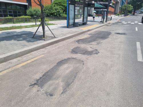 [½Åµ¿¾Æ¹æ¼Û=À̽ŵ¿±âÀÚ]²ÞÀÌ ¸ðÀÌ´Â µµ½Ã, ¹Ì·¡¸¦ ±×¸®´Â °­³²±¸(±¸Ã»Àå Á¶¼º¸í)´Â Æ÷ƮȦÀ» ¿¹¹æÇϱâ À§ÇØ ¼±¸ª·Î¿¡ ÀÖ´Â ¹ö½ºÁ¤·ùÀå 9°³¼Ò ÁÖº¯ µµ·Î(186m)¸¦ °í°­¼º ÇÁ¸®Ä³½ºÆ® ÄÜÅ©¸®Æ®·Î Æ÷ÀåÇß´Ù. ¾Æ½ºÆÈÆ®°¡ ±ò¸° ¹ö½ºÁ¤·ùÀå µµ·Î¸¦ ÄÜÅ©¸®Æ®·Î ¹Ù²ã Æ÷ÀåÇÑ °ÍÀº¡¦