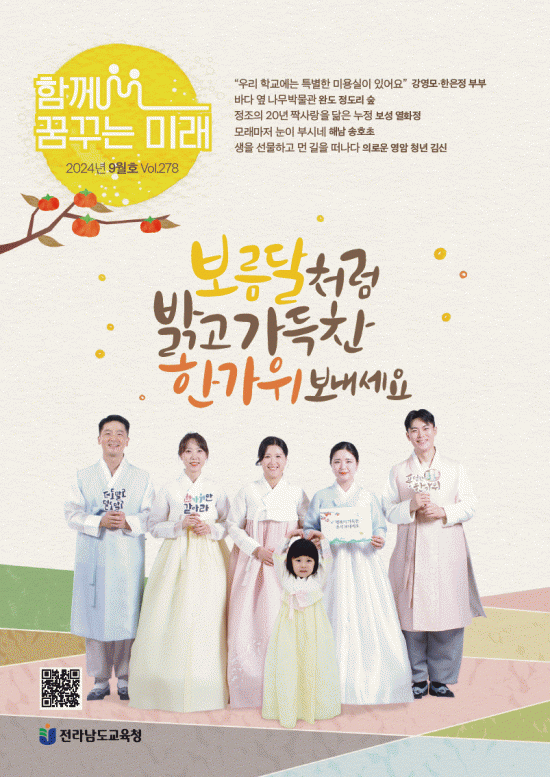 [½Åµ¿¾Æ¹æ¼Û=À̽ŵ¿±âÀÚ] Àü¶ó³²µµ±³À°Ã» ¼Ò½ÄÁö <ÇÔ²² ²Þ²Ù´Â ¹Ì·¡> 9¿ùÈ£°¡ ³ª¿Ô´Ù. À̹øÈ£´Â Ãß¼®À» ¸Â¾Æ ÇѺ¹À¸·Î °ö°Ô ´ÜÀåÇÑ Àü³²±³À°°¡Á·ÀÌ Ç¥Áö¸¦ Àå½Ä, µ¶Àڵ鿡°Ô Ãß¼® Àλ縦 ÀüÇÑ´Ù. ¡®ÇÔ²² ²Þ¡¯ Äڳʴ º¸¼º °­¿µ¸ð¡¤ÇÑÀºÁ¤ ºÎºÎ¿Í ÀÇ·Î¿î ¿µ¾Ï û³â ±è¡¦