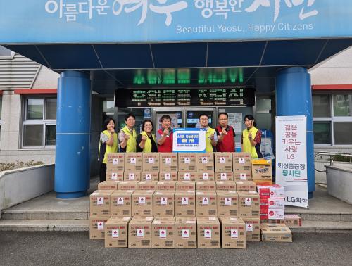 [½Åµ¿¾Æ¹æ¼ÛÀü³²¿©¼ö=±è±â³² ±âÀÚ] LGÈ­ÇÐ È­¼ºÇ°°øÀå ºÀ»ç´Ü(´ÜÀå ÁÖÀ籸 »ó¹«)´Â Áö³­ 27ÀÏ ¼Ò¿ÜµÈ ÀÌ¿ôµéÀ» À§ÇØ 132¸¸ ¿ø »ó´çÀÇ »ýȰ¿ëǰ ¼¼Æ® ¹× ½Ä·áǰÀ» ¿©¼ö½Ã ¼Ò¶ó¸é¿¡ ±âŹÇß´Ù. ±âŹµÈ ÈÄ¿øÇ°Àº ¼Ò¶ó¸é ¡®ÇູÇÑ ³ª´® ³ÃÀå°í¡¯ ÅëÇØ µ¶°Å³ëÀÎ, Àå¾ÖÀΡ¦