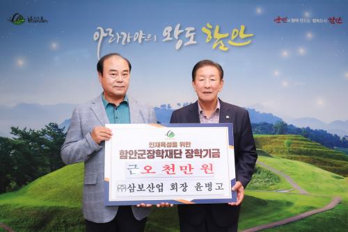 [½Åµ¿¾Æ¹æ¼Û ÇԾȱº=À̽ŵ¿±âÀÚ]¢ß»ïº¸»ê¾÷(ȸÀå À±º´°í)Àº 30ÀÏ ¿ÀÈÄ ÇԾȱºÃ»À» ¹æ¹®ÇØ Áö¿ªÀÎÀçÀ°¼ºÀ» À§ÇÑ ÀåÇбâ±Ý 5000¸¸ ¿øÀ» ±º ÀåÇÐÀç´Ü¿¡ ±âŹÇß´Ù. À̳¯ ±âŹ½Ä¿¡´Â Á¤Ã¤±Ù »ïº¸»ê¾÷ ºÎȸÀå°ú ±èÈñÁ¤ »çÀåÀÌ Âü¼®ÇßÀ¸¸ç ¡°ÇԾȿ¡ ±â¹ÝÀ» µÎ°í »ç¾÷À» ¿î¿µ¡¦