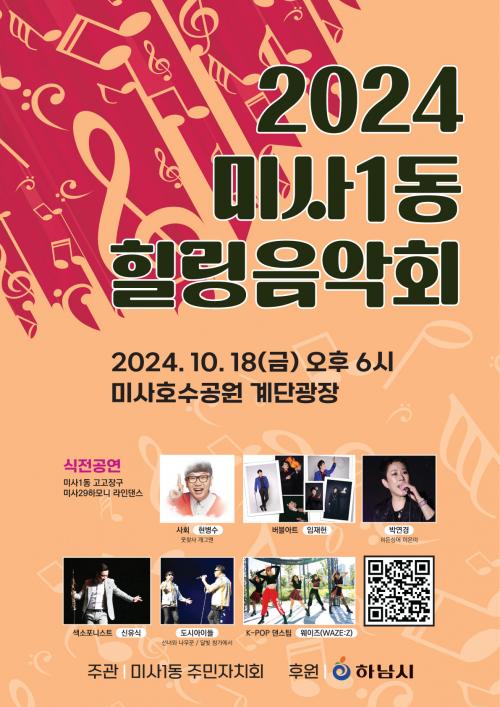 [½Åµ¿¾Æ¹æ¼Û = ½Å°æ½Ä ±âÀÚ] Çϳ²½Ã ¹Ì»ç1µ¿ ÁÖ¹ÎÀÚġȸ´Â ¿À´Â 10¿ù 18ÀÏ ±Ý¿äÀÏ ¿ÀÈÄ 6½ÃºÎÅÍ ¹Ì»çÈ£¼ö°ø¿ø °è´Ü±¤Àå¿¡¼­ '2024³â ¹Ì»ç1µ¿ Èú¸µÀ½¾Çȸ¡¯¸¦ °³ÃÖÇÑ´Ù. À̹ø À½¾Çȸ´Â ¹Ì»ç1µ¿ ÁÖ¹ÎÀÚÄ¡ ÇÁ·Î±×·¥°ú ¾ÆÆÄÆ® µ¿¾Æ¸®ÀÇ ÃàÇÏ °ø¿¬À» ½ÃÀÛÀ¸·Î, ¹öºí¾ÆÆ®, ¡¦