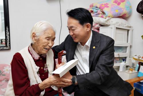 [½Åµ¿¾Æ¹æ¼Û ÀÎõ= À±¹Î½Ä±âÀÚ] ÀÎõ µ¿±¸(±¸Ã»Àå ±èÂùÁø)´Â Áö³­ 15ÀÏ Á¦28ȸ ³ëÀÎÀÇ ³¯À» ±â³äÇØ ¿ÃÇØ 100¼¼¸¦ ¸ÂÀÌÇÑ ¾î¸£½Å °¡Á¤À» Á÷Á¢ ¹æ¹®ÇÏ¿© Àå¼öÁöÆÎÀÌ(û·ÁÀå)¿Í ´ëÅë·É ºÎºÎÀÇ Àå¼ö ÃàÇÏ ¼­Çѹ®À» Àü´ÞÇß´Ù°í ¹àÇû´Ù. Àå¼öÁöÆÎÀÌ(û·ÁÀå)Àº ¸í¾ÆÁÖ¶ó´Â¡¦