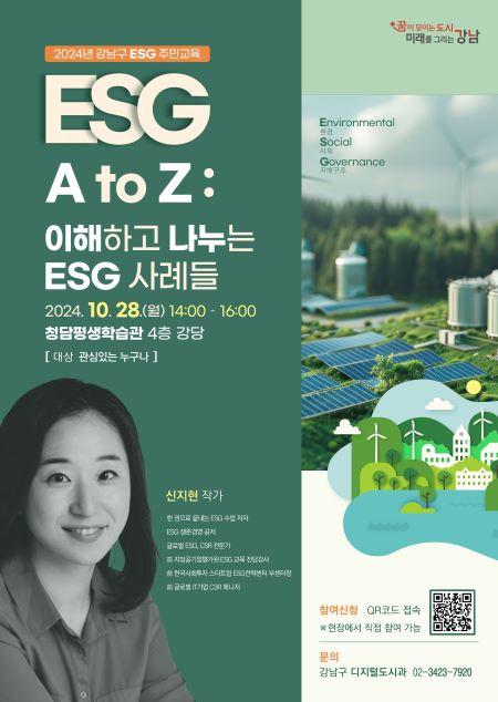 [½Åµ¿¾Æ¹æ¼Û °­³²±¸=À̽ŵ¿±âÀÚ] ²ÞÀÌ ¸ðÀÌ´Â µµ½Ã, ¹Ì·¡¸¦ ±×¸®´Â °­³²±¸´Â 28ÀÏ ¿ÀÈÄ 2½ÃºÎÅÍ 4½Ã±îÁö û´ãÆò»ýÇнÀ°ü 4Ãþ °­´ç¿¡¼­ ±¸¹Î 150¿© ¸íÀ» ´ë»óÀ¸·Î ESG Ư°­À» °³ÃÖÇÑ´Ù. ESG(ȯ°æ, »çȸ, Áö¹è±¸Á¶)´Â ±âÈÄ À§±â¿Í ź¼ÒÁ߸³ ½Ã´ë¸¦ ¸Â¾Æ ±â¾÷ÀÇ Áö¼Ó °¡¡¦