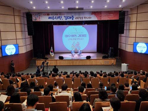 [½Åµ¿¾Æ¹æ¼Û ¿©¼ö½Ã-À̽ŵ¿±âÀÚ] Àü¶ó³²µµ¿©¼ö±³À°Áö¿øÃ»ÀÌ 10¿ù 18ÀÏ Àü¶ó³²µµ±³À°Ã»Çлý±³À°¹®È­È¸°ü¿¡¼­ ±è´ëÁß ±³À°°¨ ÃÊû ¿¡µàÄܼ­Æ®¡¸e-ëåÅåÅå, ¿©¼ö±³À°À» µÎµå¸®´Ù¡¹¸¦ °³ÃÖÇß´Ù. À̹ø Çà»ç´Â Àü¶ó³²µµ¿©¼ö ¹Î°ü»êÇÐ ±³À°Çù·ÂÀ§¿øÈ¸¿Í ¿©¼öÇкθðȸ¿¬ÇÕȸ¡¦