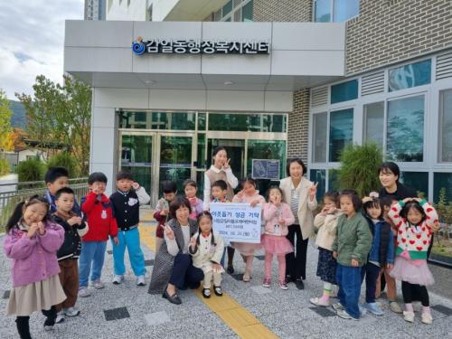 [½Åµ¿¾Æ¹æ¼Û Çϳ²½Ã=À̽ŵ¿±âÀÚ] Çϳ²½Ã °¨Àϵ¿ ½Ã¸³°¨Àϸ®Æ²Æ÷·¹¾î¸°ÀÌÁý ¿øÀå Ȳ¼±¿Á°ú ¾î¸°ÀÌÁý ¿ø¾ÆµéÀÌ 10¿ù 21ÀÏ °¨Àϵ¿ÇàÁ¤º¹Áö¼¾ÅÍ¿¡ ¹æ¹®ÇÏ¿© ¾î¸°ÀÌÁý ¹ÙÀÚȸ ¼öÀÍ±Ý 607,500¿øÀ» °¨Àϵ¿¿¡ Àü´ÞÇß´Ù°í ¹àÇû´Ù. À̳¯ ¼º±ÝÀº Áö³­ 10¿ù 1ÀÏ È¯°æº¸È£ ½ÇõÀÇ ÀÏ¡¦
