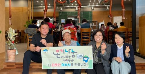 [½Åµ¿¾Æ¹æ¼ÛÀü³²¿©¼ö=±è±â³² ±âÀÚ] ¿©¼ö½Ã ¼±¿øµ¿ ¼ÒÀçÀÇ ´Ù¿µÀ̳×Á¤À°½Ä´ç(´ëÇ¥ Á¤À±°æ)ÀÌ Áö³­ 21ÀÏ ¿©Ãµµ¿ ¾î¸£½Å 30¿© ¸í¿¡°Ô µû¶æÇÑ Á¡½É ÇÑ ³¢¸¦ ´ëÁ¢Çß´Ù. À̳¯ Çà»ç´Â Á¤À±°æ ´ëÇ¥°¡ À½½ÄÁ¡ °³¾÷À» ±â³äÇϸç Áֹε鿡°Ô ±×°£ÀÇ °¨»çÇÑ ¸¶À½À» ÀüÇϱâ À§ÇØ¡¦