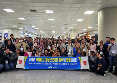 [½Åµ¿¾Æ¹æ¼ÛÀü³²¿©¼ö=±è±â³² ±âÀÚ] ¿©¼ö½Ã(½ÃÀå Á¤±â¸í)´Â ¾îÃÌ Àη ºÎÁ·À» ÇØ°áÇϱâ À§ÇØ ¿ÃÇØ óÀ½ µµÀÔÇÑ Çʸ®ÇÉ °èÀý±Ù·ÎÀÚ 51¸íÀÌ Áö³­ 22ÀÏ ºÎ»ê ±èÇØ°øÇ×À» ÅëÇØ ÀÔ±¹Çß´Ù°í ¹àÇû´Ù. ½Ã¿¡ µû¸£¸é À̹ø¿¡ ÅõÀ﵃ ¿Ü±¹ÀÎ °èÀý±Ù·ÎÀÚ´Â ÃÑ 129¸íÀ¸·Î, ³²Àº¡¦