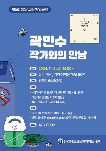 [½Åµ¿¾Æ¹æ¼Û ¿µ¾Ï±º=À̽ŵ¿±âÀÚ] Àü¶ó³²µµ±³À°Ã»¿µ¾Ïµµ¼­°üÀº ¿À´Â 11¿ù 9ÀÏ(Åä) Á¦5ȸ ¿µ¾Ï ±×¸²Ã¥ Àι®ÇÐ: °û¹Î¼ö ÀÛ°¡¿ÍÀÇ ¸¸³²À» ¿î¿µÇÑ´Ù. ´ë»óÀº À¯¾Æ¡¤Çлý ¹× Áö¿ªÁֹΠ50¸íÀÌ¸ç Æò»ýÇнÀ½Ç1(2Ãþ)¿¡¼­ ÁøÇàµÈ´Ù. ¿ÃÇØ ´Ù¼¸ ¹øÂ°·Î ÁøÇàµÇ´Â À̹ø °­¿¬Àº ¡¦