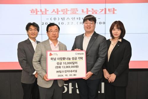 [½Åµ¿¾Æ¹æ¼Û Çϳ²½Ã=À̽ŵ¿±âÀÚ] Áö³­ 22ÀÏ »ç·á ¹× »ç·á÷°¡Á¦ ¼öÃâÀÔ ±â¾÷ÀÎ ¢ßÅÒ½ºÀÎÅͳ»¼Å³ÎÀÌ Çϳ²½Ã¿¡ ¼º±Ý 10,000´Þ·¯(ÇÑÈ­ 13,069,000¿ø)¸¦ ±âŹÇϰí À̸¦ ±â³äÇϱâ À§ÇØ ±âʽÄÀ» °¡Á³´Ù. À̳¯ ±âŹ½Ä¿¡´Â ÀÌÇöÀç Çϳ²½ÃÀåÀ» ºñ·ÔÇÏ¿© ¢ßÅÒ½ºÀÎÅͳ»¼Å³Î ¿ÀÈ­¡¦