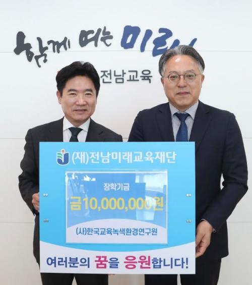 [½Åµ¿¾Æ¹æ¼Û Àü³²=À̽ŵ¿±âÀÚ] »ç´Ü¹ýÀÎ Çѱ¹±³À°³ì»öȯ°æ¿¬±¸¿øÀº 30ÀÏ(¼ö) Àü³²¹Ì·¡±³À°Àç´Ü¿¡ ÀåÇÐ±Ý 1õ¸¸¿øÀ» ±âŹÇß´Ù. À̹ø ±âŹÀº ÇлýµéÀÌ ²ÞÀ» ÀÚ±âÁÖµµÀûÀ¸·Î °èȹÇÏ°í °³ÀÎÀÇ ¼ÒÁú°ú Àû¼ºÀ» Ű¿ö³ª°¥ ¼ö ÀÖµµ·Ï Áö¿øÇϱâ À§ÇØ ÀÌ·ïÁ³´Ù. (»ç)Çѱ¹±³À°¡¦