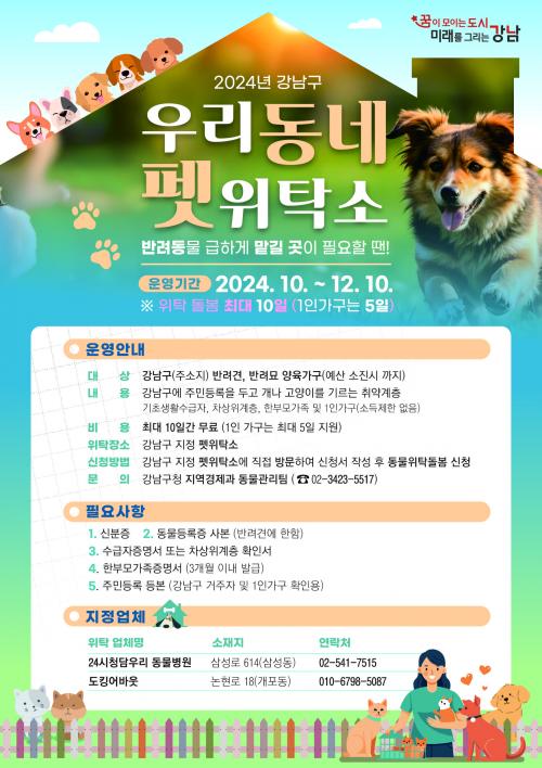 [½Åµ¿¾Æ¹æ¼Û °­³²±¸=À̽ŵ¿±âÀÚ] ²ÞÀÌ ¸ðÀÌ´Â µµ½Ã, ¹Ì·¡¸¦ ±×¸®´Â °­³²±¸°¡ ¿ÃÇØ ¿¬¸»±îÁö ¿ì¸® µ¿³× Æê À§Å¹¼ÒÀÇ ½ÅûÀÚ¸¦ ¸ðÁýÇÑ´Ù. ¿ÃÇØ ½Ã¹ü ¿î¿µÇÏ´Â Æê À§Å¹¼Ò´Â º´¿ø ÀÔ¿øÀ̳ª ¿©Çà µîÀ¸·Î ¹Ý·Á°ß¡¤¹Ý·Á¹¦¸¦ ±ÞÇÏ°Ô ¸Ã±æ °÷ÀÌ ÇÊ¿äÇÑ ±¸¹Î¿¡°Ô Á¦°øµÇ´Â ¹Ý·Áµ¿¹°¡¦