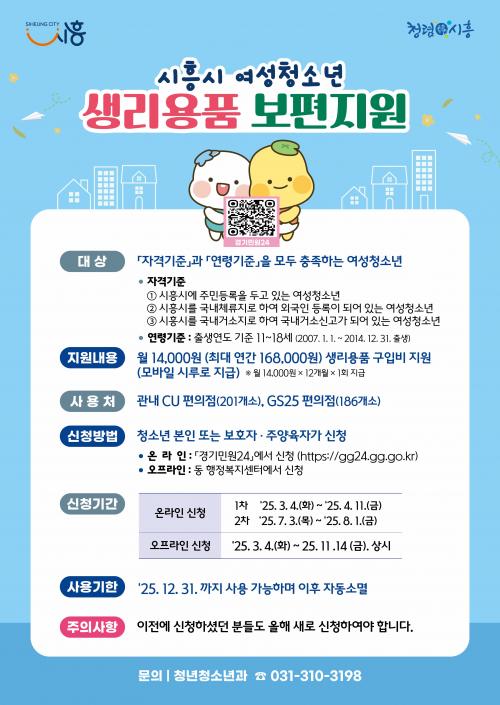 [½Åµ¿¾Æ¹æ¼Û ½ÃÈï½Ã=À̽ŵ¿±âÀÚ] ½ÃÈï½Ã°¡ 3¿ù 4ÀϺÎÅÍ ¡®2025³âµµ ½ÃÈï½Ã ¿©¼ºÃ»¼Ò³â »ý¸®¿ëǰ º¸ÆíÁö¿ø »ç¾÷¡¯ ½ÅûÀ» ¹Þ´Â´Ù. ½Ã´Â ¿©¼ºÃ»¼Ò³âµéÀÇ »ý¸®¿ëǰ ±¸ÀÔÀ» µ½±â À§ÇØ Áö¿ªÈ­ÆóÀÎ ¡®½Ã·ç¡¯(¸ð¹ÙÀÏ)¸¦ Áö¿øÇÑ´Ù. ¿ù 1¸¸4õ ¿ø, ¿¬°£ ÃÖ´ë 16¸¸8õ ¿øÀÌ Áö¿ø¡¦