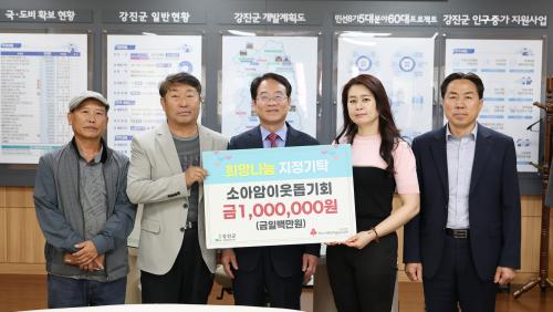 ¼Ò¾Æ¾ÏÀÌ¿ôµ½±âȸ, °­Áø±º¿¡ ÁöÁ¤±âŹ±Ý 100¸¸ ¿ø Àü´Þ