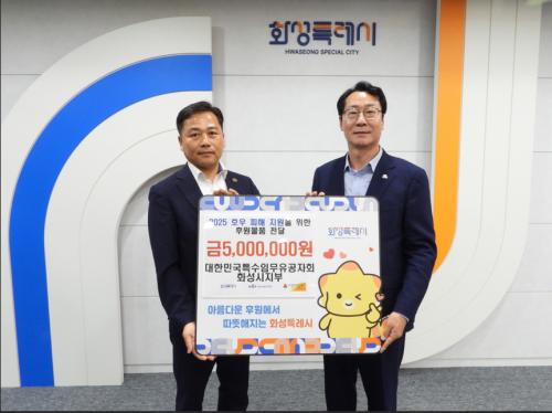 ´ëÇѹα¹Æ¯¼öÀÓ¹«À¯°øÀÚȸ È­¼º½ÃÁöȸ, È­¼ºÆ¯·Ê½Ã¿¡ È£¿ì ÇÇÇØÁö¿ª Áö¿ø À§ÇÑ 5¹é¸¸ ¿ø »ó´ç ÈÄ¿ø¹°Ç° ±âŹ