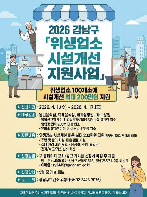 [½Åµ¿¾Æ¹æ¼Û °­³²±¸=À̽ŵ¿±âÀÚ] ²ÞÀÌ ¸ðÀÌ´Â µµ½Ã, ¹Ì·¡¸¦ ±×¸®´Â °­³²±¸°¡ °æ±âħü¿Í ¸ÅÃâ °¨¼Ò·Î ¾î·Á¿òÀ» °Þ´Â À§»ý¾÷¼ÒÀÇ ¿µ¾÷ȯ°æ °³¼±À» À§ÇØ ¡®À§»ý¾÷¼Ò ½Ã¼³°³¼± Áö¿ø»ç¾÷¡¯À» ÃßÁøÇÑ´Ù. °­³²±¸ ³» ÀϹÝÀ½½ÄÁ¡, ÈÞ°ÔÀ½½ÄÁ¡, Á¦°úÁ¡¿µ¾÷, ÀÌ¡¤¹Ì¿ë¾÷¼Ò µî 100°³¡¦