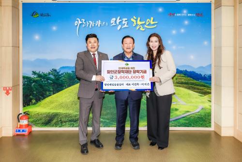 [½Åµ¿¾Æ¹æ¼Û °æ³²ÇÔ¾È=À̽ŵ¿±âÀÚ] ÇԾȱºÀº Áö³­ 7ÀÏ ÇÔ¾ÈÁ¦ÀϽ¡ºÒ°¥ºñ ÀÌ°Ç¿í ´ëÇ¥°¡ ¹è¿ìÀÚ ÀÌÁöÀº ¾¾¿Í ÇÔ²² ÇԾȱºÀåÇÐÀç´ÜÀ» ¹æ¹®ÇØ Áö¿ªÀÎÀç À°¼ºÀ» À§ÇÑ ÀåÇÐ±Ý 300¸¸ ¿øÀ» ±âŹÇß´Ù°í ¹àÇû´Ù. ÀÌ°Ç¿í ´ëÇ¥´Â üÀ°À» Àü°øÇßÀ¸¸ç, Áö¿ª û¼Ò³âµé°ú üÀ° ²Þ³ª¡¦