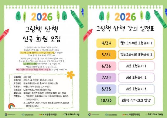 [½Åµ¿¾Æ¹æ¼Û µµºÀ±¸=À̽ŵ¿±âÀÚ] ¼­¿ï µµºÀ±¸ µµºÀ±âÀûÀǵµ¼­°üÀÌ µ¶¼­µ¿¾Æ¸® ¡®±×¸²Ã¥ »êÃ¥¡¯À» È®´ë ¿î¿µÇÑ´Ù. ¡®±×¸²Ã¥ »êÃ¥¡¯Àº ±×¸²Ã¥À» ÇÔ²² Àаí À̾߱⸦ ³ª´©´Â ¼ºÀÎ µ¶¼­ µ¿¾Æ¸®´Ù. ¾Õ¼­ µµ¼­°üÀº ¹®È­Ã¼À°°ü±¤ºÎ¿Í Çѱ¹µµ¼­°ü¹®È­Àç´ÜÀÌ ÃßÁøÇÏ´Â ¡®2026³â µµ¡¦